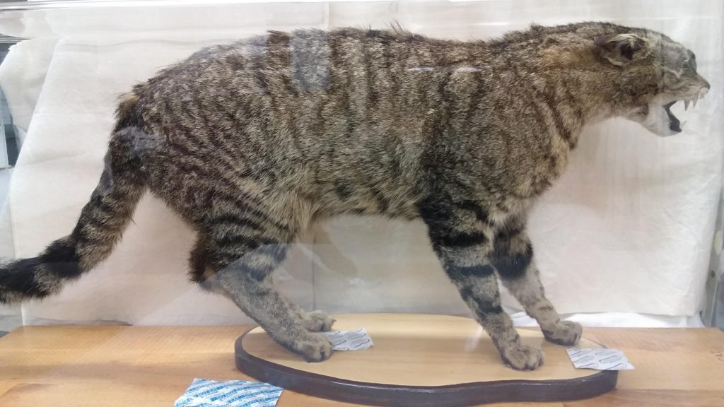 Cats were brought here by early European explorers. Their ships were heavily infested with rats and they were used to help control them. In later years when rabbits had become a problem for farmers they were released in the countryside in an effort to control the rabbits.